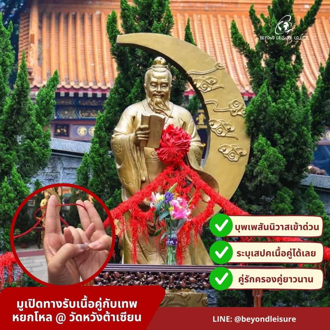 วัดแห่งนี้มีอายุกว่า 100 ปี และเป็นที่ประดิษฐานของเทพเจ้าจีนหลายองค์ เทพที่ขึ้นชื่อและศักดิ์สิทธิ์มากสำหรับสาวโสดที่มักจะมาขอพรเรื่องความรักกับ “เทพเจ้าหยกโหลว หรือ เทพเจ้าด้ายแดง” ซึ่งมีอยู่ทั้งหมด 3 องค์ องค์กลางคือ องค์เทพอาวุโส ด้านซ้ายเป็นเทพเจ้าสาว ด้านขวาเป็นเทพเจ้าบ่าว โดยจะมีด้ายสีแดงเชื่อมทั้ง 3 องค์ไว้ เป็นความเชื่อที่ว่าการผูกด้ายแดงแห่งดวงชะตาระหว่างคู่รัก ซึ่งเมื่อคู่กันแล้วก็จะไม่แคล้วคลาดกัน นอกจากนั้นวัดแห่งนี้ยังโด่งดังเรื่องการขอพรเรื่องสุขภาพ ชาวฮ่องกงและชาวไทยเชื่อกันว่าใครมีโรคภัยให้เจ็บอยู่มาขอก็มีอาการดีขึ้นจนถึงหายเป็นปลิดทิ้ง